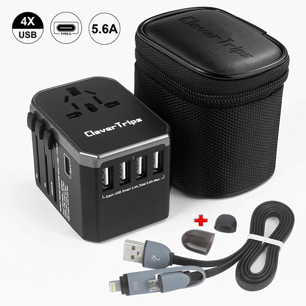 This travel plug can be used in over 180 different countries and can charge one device with a standard UK plug, and 4 devices using USB cables.
